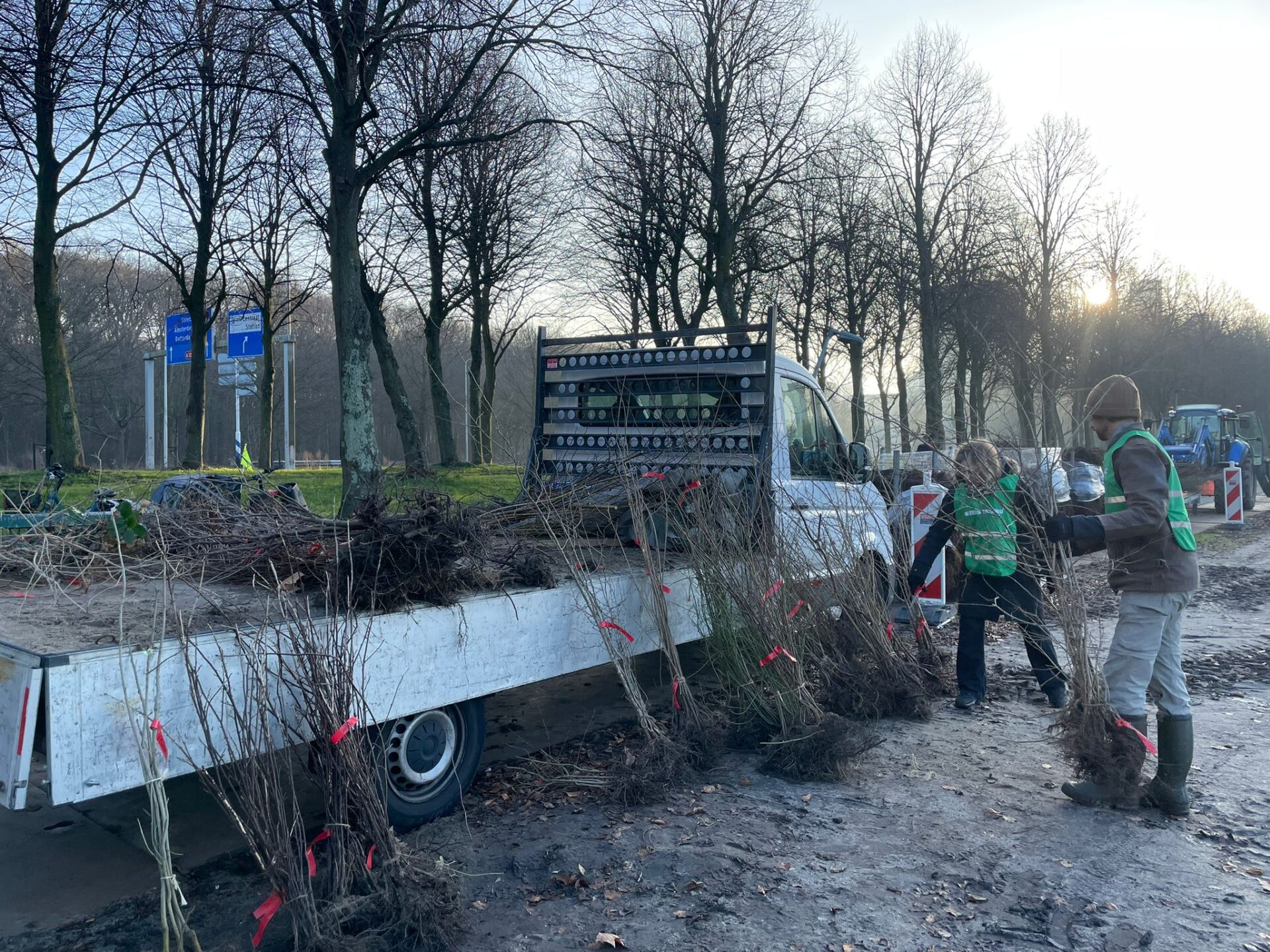 Met een laadbak vol Haagse oogst verzamelden we ons zaterdagochtend vroeg op het Malieveld. Naast het plantgoed van Meer Bomen Nu waren er ook prachtig gekweekte boompjes en struiken, geregeld door de gemeente Den Haag en Staatsbosbeheer. Samen zorgde dit voor een mooie diversiteit aan soorten, waaronder meidoorn, liguster, linde, kornoelje, kardinaalsmuts, zwarte els, veldesdoorn en zelfs kruisbes. Die laatste werd geoogst in het Staelduinse Bos!