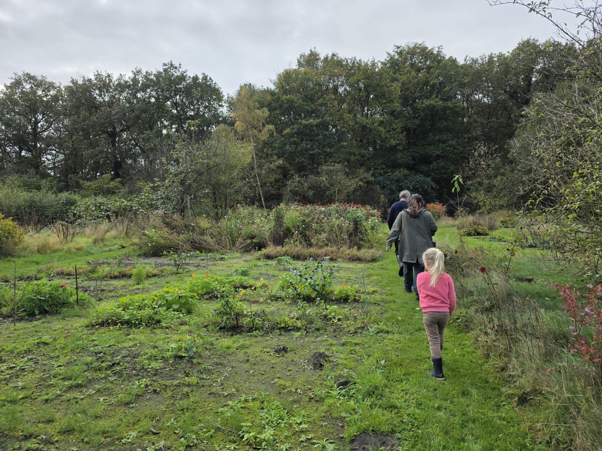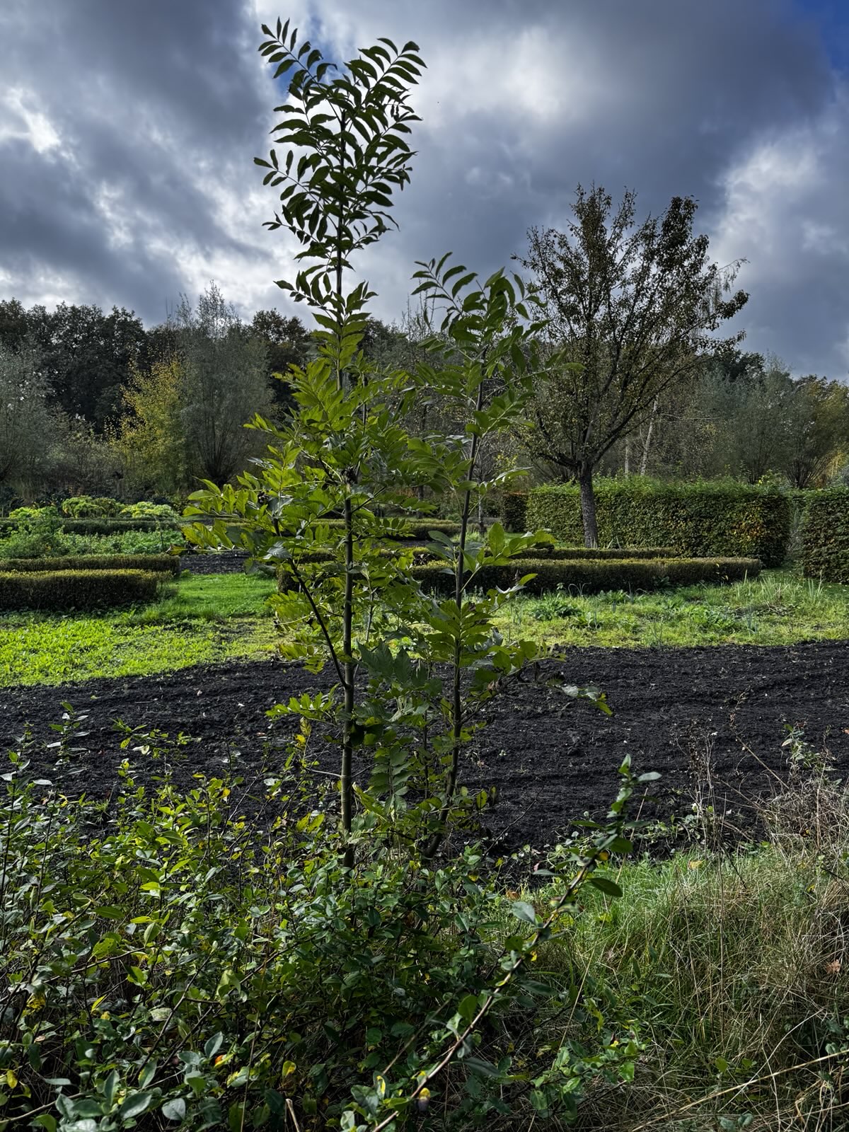 Met een groep van tien vrijwilligers, samen met Anne, Marja en drie medewerkers van de Tuinen van Weldadigheid, trokken we het terrein op. Hier staan honderden bijzondere soorten, maar net als in elke kwekerij, tuin, bos of voedselbos, komen zaailingen soms op plekken terecht waar ze niet kunnen blijven staan. Precies die hebben we gered.