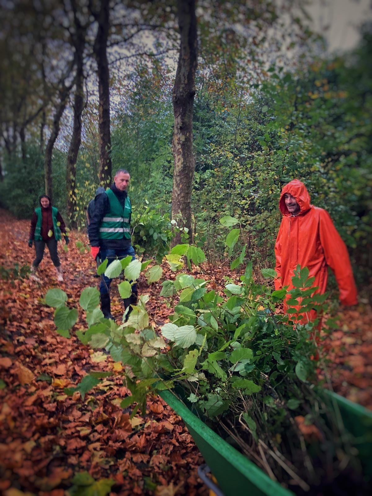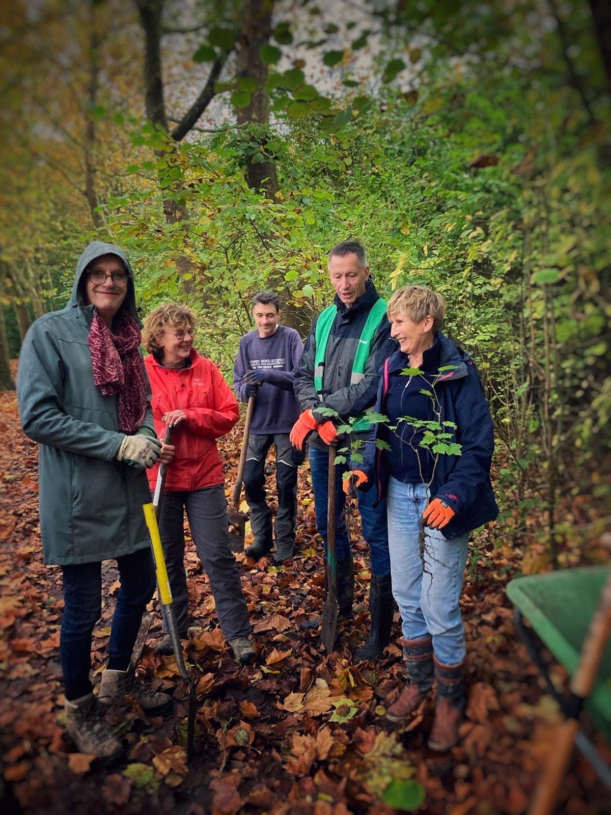 Met acht personen, twee kruiwagens, spades en goede moed zijn de deelnemers van Meer Bomen Nu het Middelstumerbos ingelopen. Onderweg hebben de nieuwe mensen uitleg gekregen over het oogsten. Op het eerste gezicht leken er in het bos alleen zaailingen van de Es te staan, maar al gauw werden ook Hazelaar, Kardinaalsmuts, Eik, Kastanje, Kornoelje, Europese Vogelkers, Ribes en andere soorten gespot.