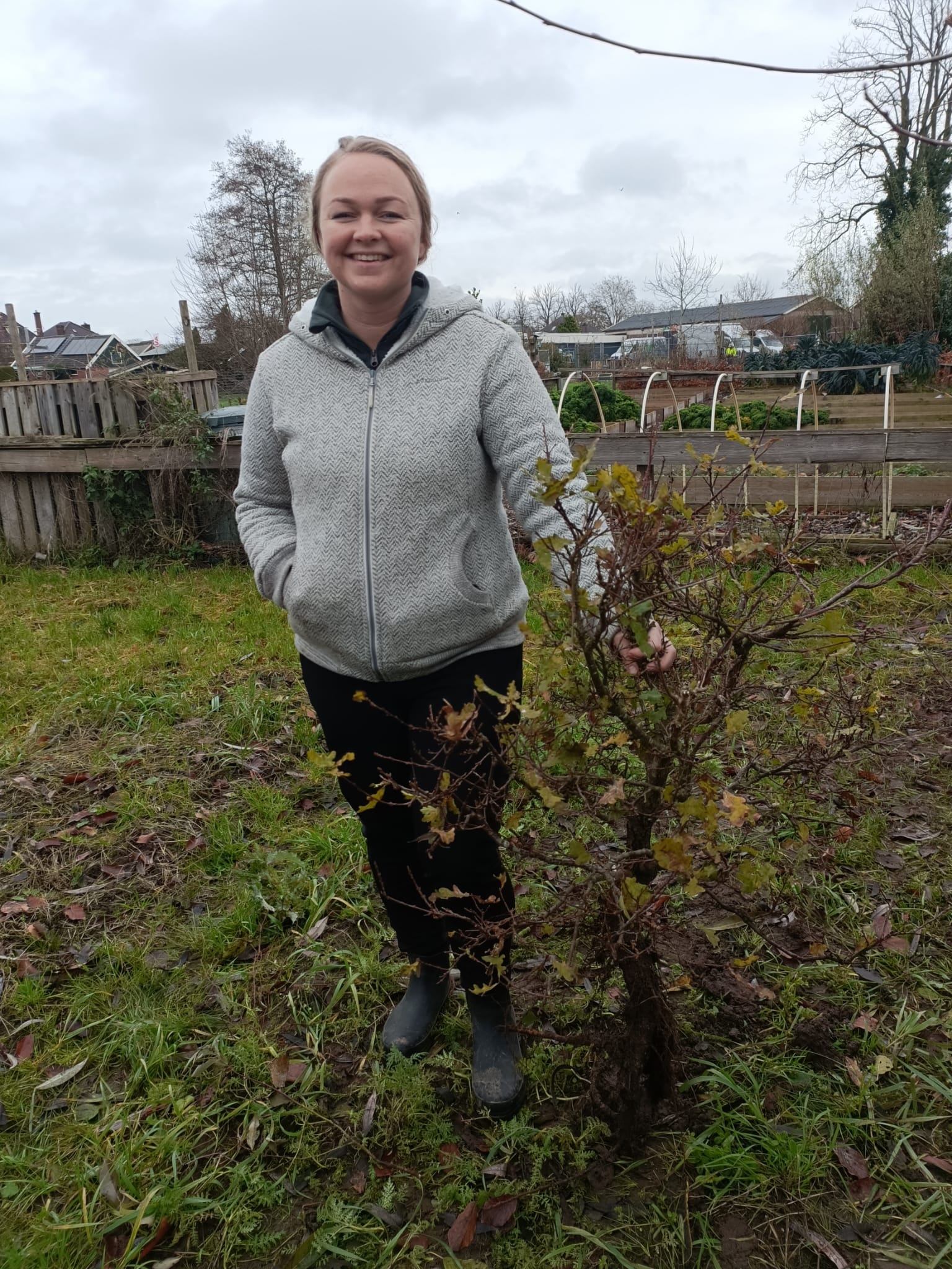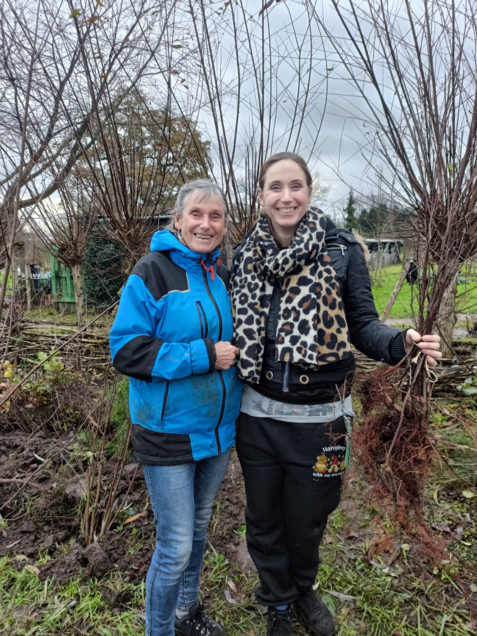 Oogsten op de Herikenberg met 8 dames die een mooie mix van berk, lijsterbes, vuilboom en grove den hebben geoogst. Een deel van de bomen is meegenomen door de oogsters zelf. De rest werd tijdelijk ingekuild in de Bomenhub bij de stadslandbouw zodat het tijdens de Uitdeeldag kon worden weggegeven aan nog meer planters voor meer bomen in tuinen, houtwallen en nieuw aan te leggen bos.