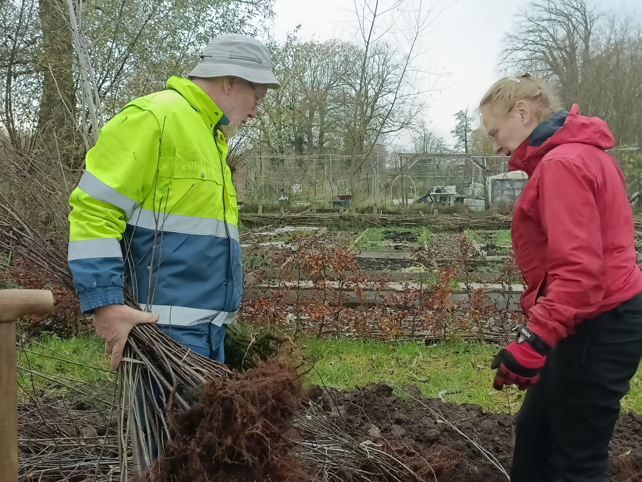 Vanaf kwart voor elf stonden we klaar om de planters mee te laten delen in de prachtige oogst van de Holterberg, de heide en het bos op de Herikenberg. Er was veel animo voor de oogst. De planters wilden graag bomen voor om hun huis of nieuw aangekochte stuk land. Voor meer natuur dichtbij. Met het uitdelen van de bomen hebben we 20 locaties blij kunnen maken. Alle bomen gingen datzelfde weekend de grond in. Zo hebben de bomen de hele winter de tijd om goed te aarden.