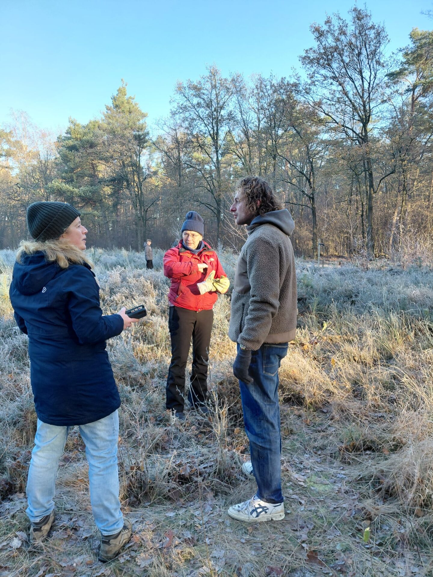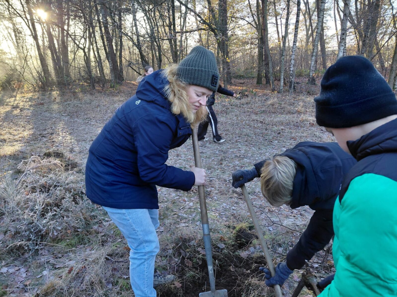 Op de heide heeft Alexandra een korte uitleg gegeven over de verschillende boomsoorten en hoe je ze kunt herkennen. Mignon liet met hulp van de kinderen zien hoe de babyboompjes geoogst konden worden. Diep steken, voorzichtig het boompje eruit halen en het zand achterlaten op de plek van oogsten. Zo krijg je geen kuilen en is het minder zwaar de boom te vervoeren. De kinderen gingen enthousiast aan de slag met oogsten. In totaal hebben ongeveer 100 bomen geoogst!