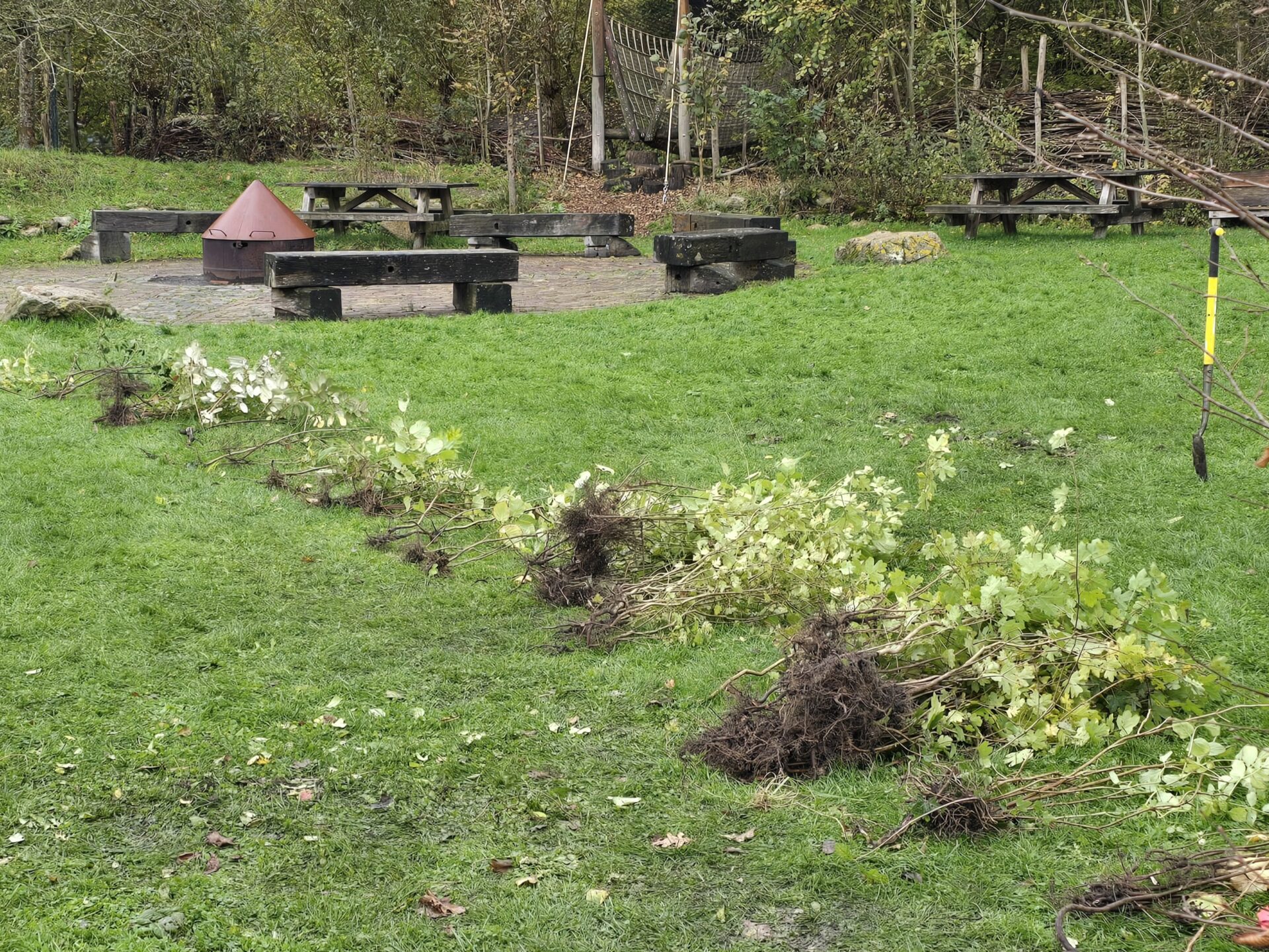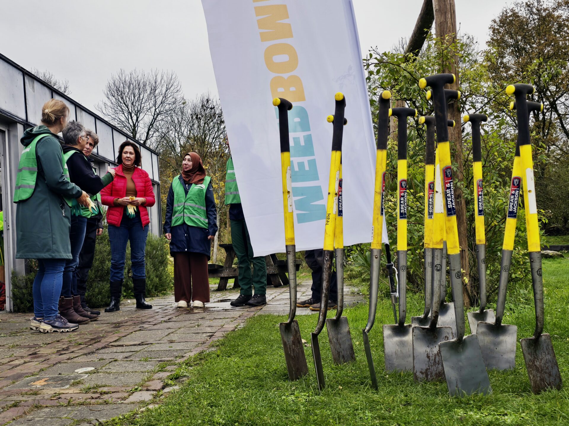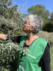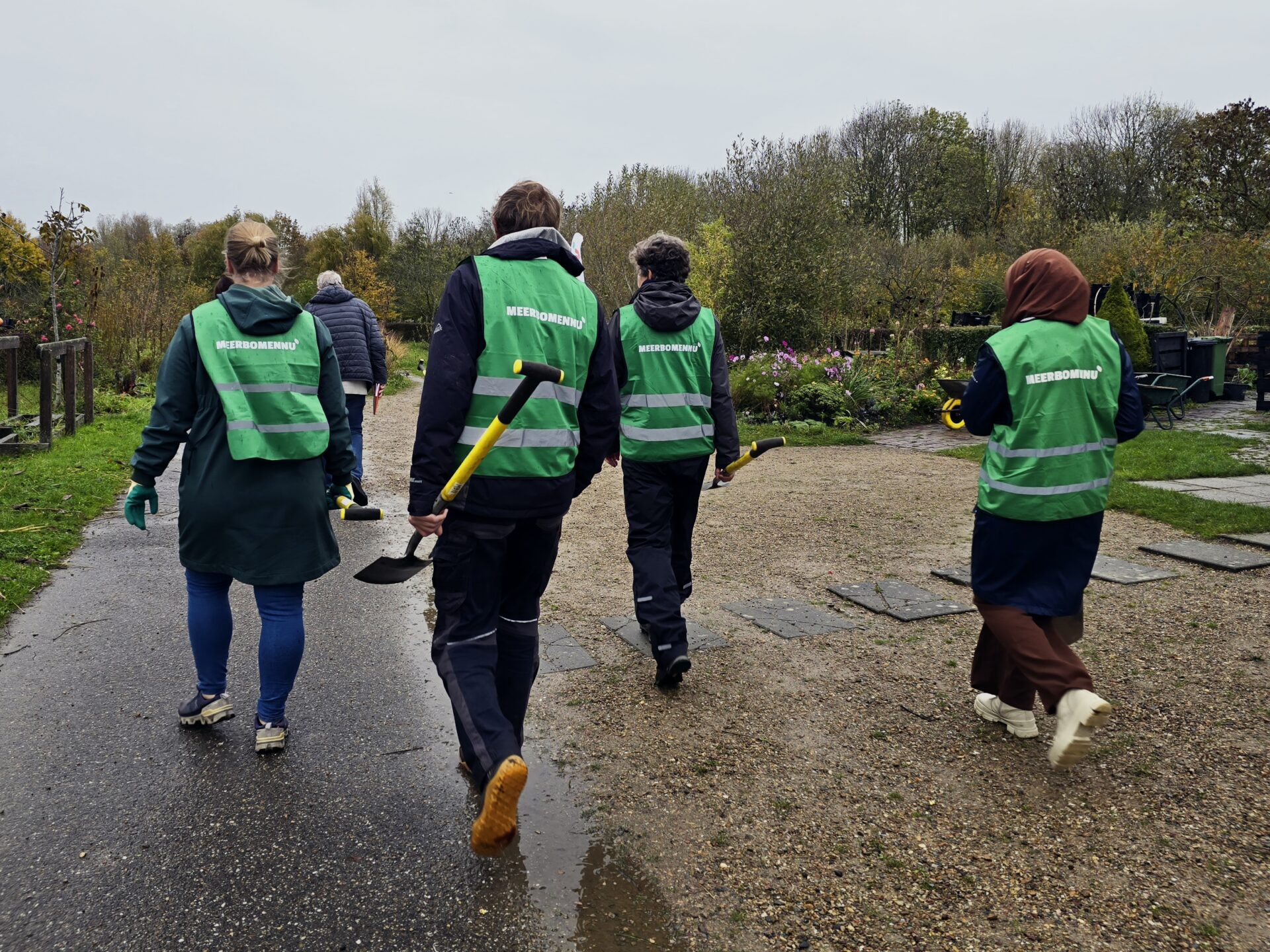 Na een korte instructie in het Engels en Nederlands ging iedereen enthousiast aan de slag. We oogsten gezamenlijk zo’n 300 zaailingen wat uitkwam op 19 verschillende soorten bomen en struiken. Dus met de diversiteit zit het wel goed op deze plek. De bekende soorten, es, veldesdoorn en wilde liguster waren er natuurlijk bij maar ook hazelaar, eik en vuilboom. Het ging vandaag om de teamspirit en het elkaar (weer) ontmoeten, dus de aantallen waren minder belangrijk 😉
