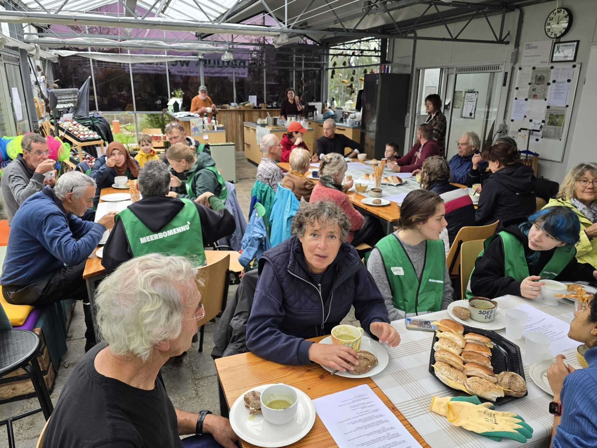 Om de dag af te sluiten hadden we nog even een moment voor koffie, thee en lekkers. Even samen uitrusten na de gezellige en inspannende dag. Samen met alle vrijwilligers kwamen we tot de conclusie dat de samenwerking op deze dag ons allemaal goed is bevallen en het smaakt naar meer! Binnenkort nog eens oogsten op deze prachtige en gastvrije locatie!?