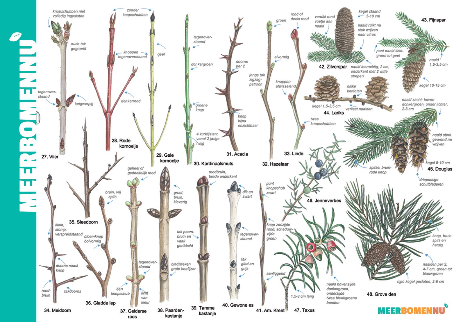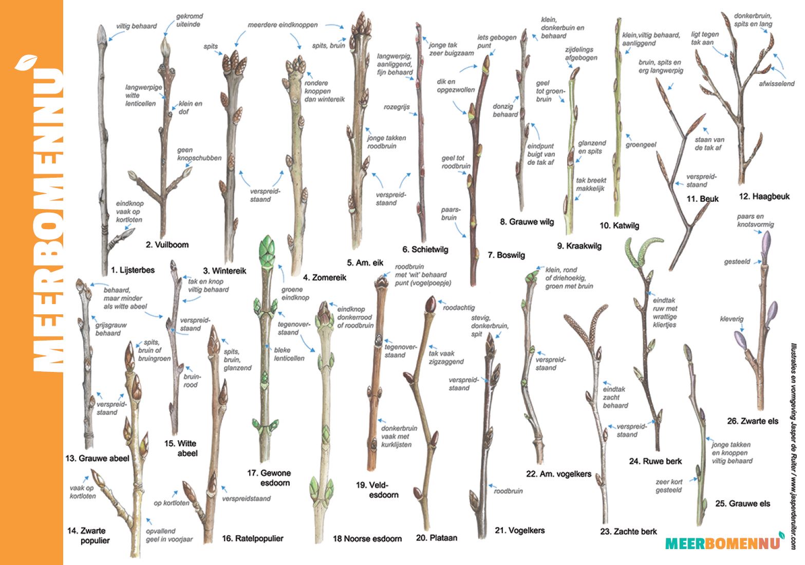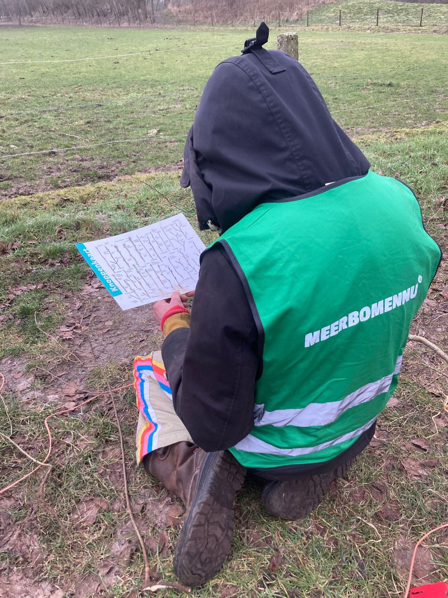 ‘Wat is dit?’, vragen we regelmatig aan elkaar. De determinatie-apps op de telefoon snappen niet altijd wat we laten zien. Maar gelukkig hebben we de ‘Knoppenkaart’. Een prachtig overzicht met de knoppen van de meest voorkomende bomen en struiken in Nederland. Dus op de knieën van dichtbij nog eens kijken en vergelijken. En als we desondanks nog twijfelen, doen we een beroep op Meer Bomen Nu-collega’s elders in het land. Een fotootje is snel rondgestuurd, en in een mum van tijd stromen de determinatie-antwoorden binnen. Lang leve de wisdom of the crowd. Zo zorgen we er met elkaar voor dat we de juiste boompjes oogsten én de juiste informatie kunnen geven aan mensen die de boompjes komen halen.